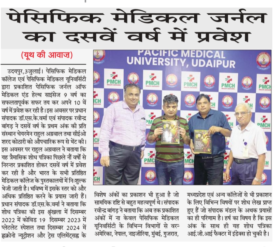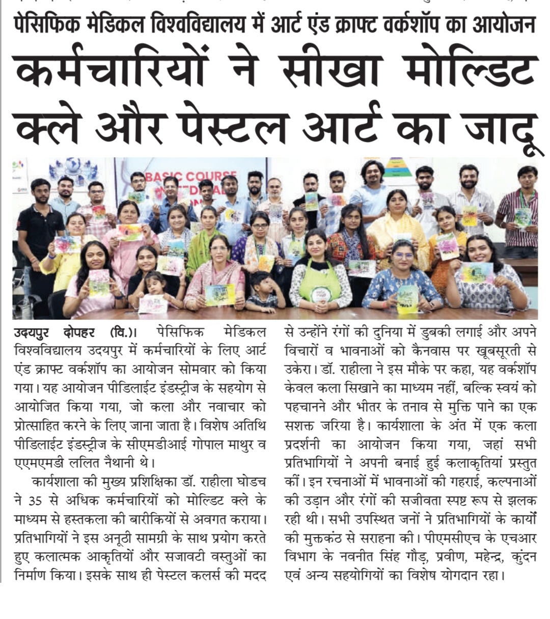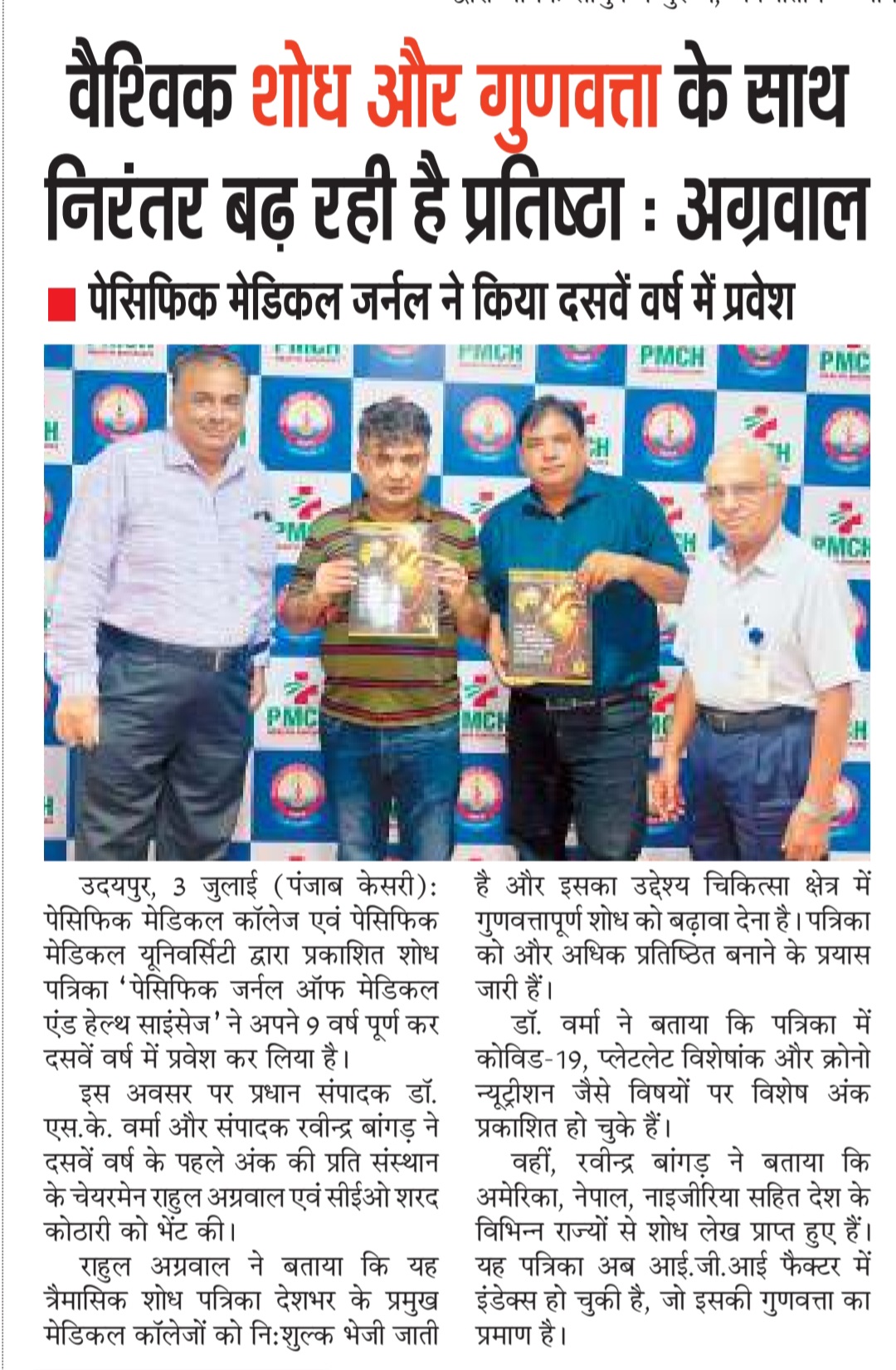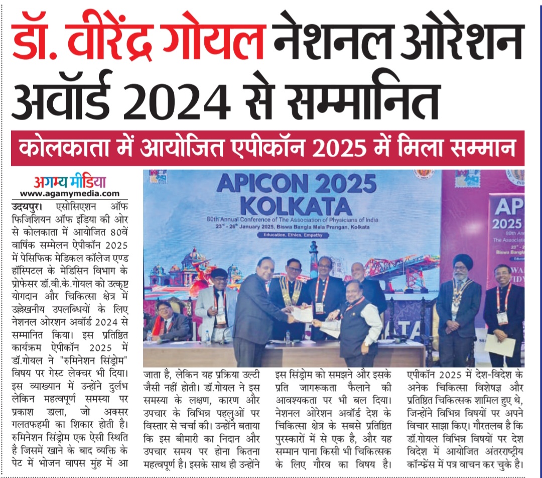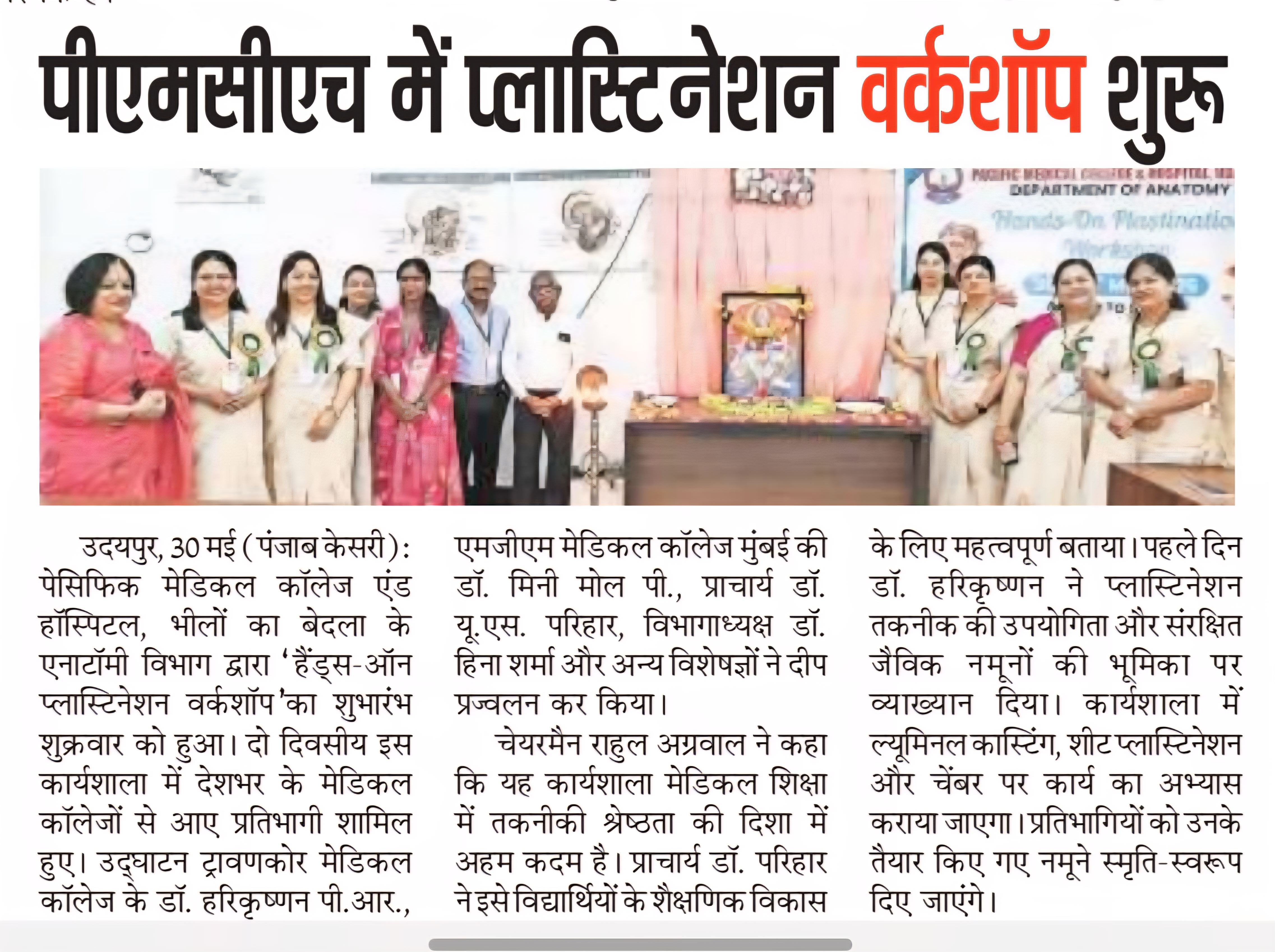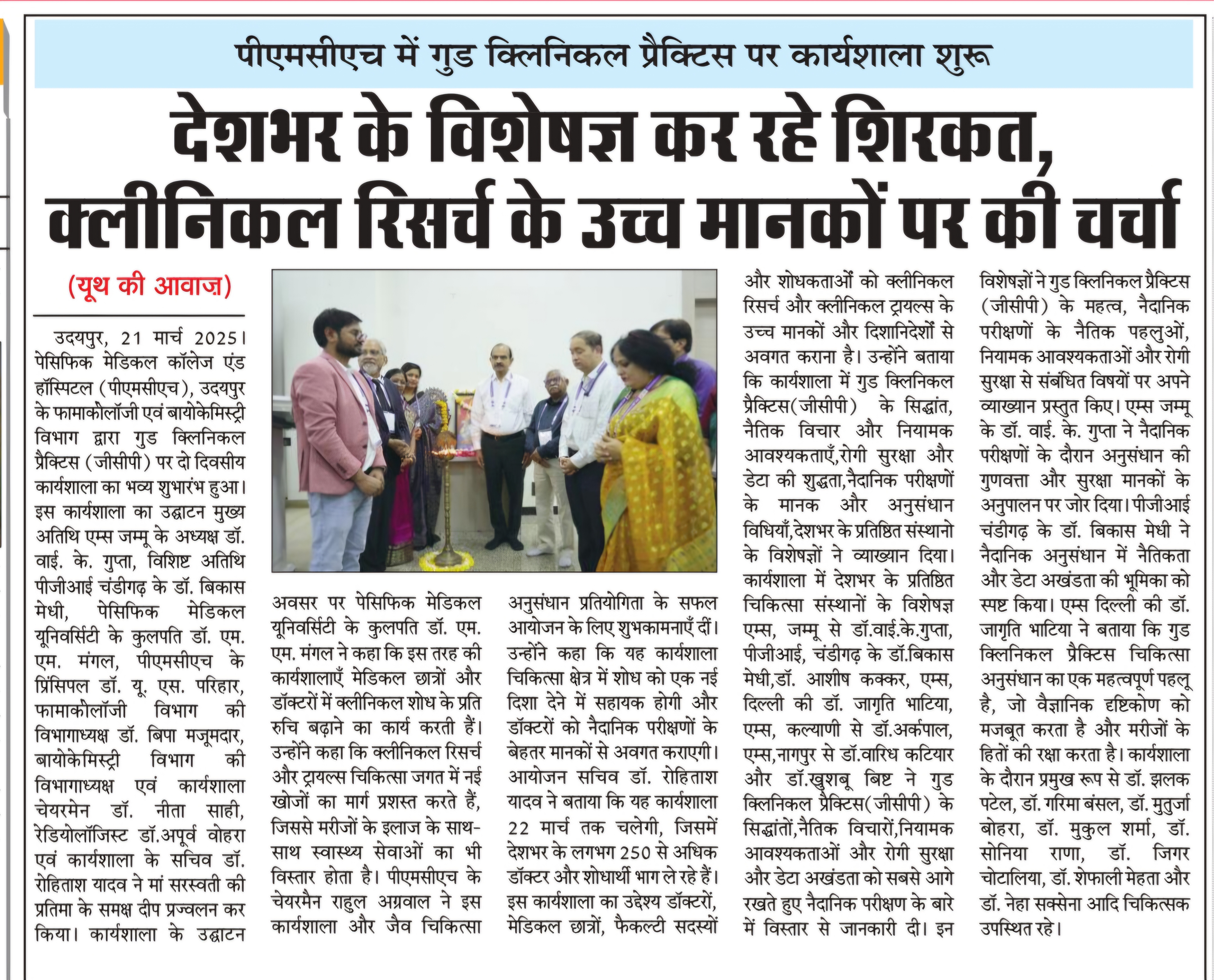 рдкреЗрд╕рд┐рдлрд┐рдХ рдореЗрдбрд┐рдХрд▓ рдХреЙрд▓реЗрдЬ рдПрдВрдб рд╣реЙрд╕реНрдкрд┐рдЯрд▓, рднреАрд▓реЛрдВ рдХрд╛ рдмреЗрджрд▓рд╛ рдПрд╡рдВ рд╢реНрд░реА рдЕрдЧреНрд░рд╡рд╛рд▓ рджрд┐рдЧрдВрдмрд░ рдЬреИрди рдкрдВрдЪрд╛рдпрдд рдХреЗ рд╕рд╛рде рд╕рдВрдпреБрдХреНрдд рд╡рд┐рд╢рд╛рд▓ рдирд┐рд╢реБрд▓реНрдХ рдЪрд┐рдХрд┐рддреНрд╕рд╛ рдкрд░рд╛рдорд░реНрд╢,рдЬрд╛рдВрдЪ рдПрд╡рдВ рднрд░реНрддреА рд╢рд┐рд╡рд┐рд░ 29 рдЬреВрди рдХреЛ рд╢реНрд░реА 1008 рд╕реБрдорддрд┐ рдирд╛рде рдЕрдЧреНрд░рд╡рд╛рд▓ рджрд┐рдЧрдВрдмрд░ рдЬреИрди рдордВрджрд┐рд░ (рдЬреИрди рдмреЛрд░реНрдбрд┐рдЧ) рдзрд╛рдирдордВрдбреА рдЙрджрдпрдкреБрд░ рдХрд┐рдпрд╛ рдЬрд╛рдПрдЧрд╛ред рд╢рд┐рд╡рд┐рд░ рдХреБрдВрддреБрдХреБрдорд╛рд░рдЬреА рдЧрдгрдкрддреЛрдд, рдорд╣реЗрдВрджреНрд░рдЬреА рдЯрд╛рдпрд╛ рдПрд╡рдВ рдкрд╛рд░рд╕рдЬреА рд╕рд┐рдВрдШрд╡реА рджреНрд╡рд╛рд░рд╛ рдкреНрд░рд╛рддрдГ 9.30 рдмрдЬреЗ рдХрд┐рдпрд╛ рдЬрд╛рдПрдЧрд╛ред рдкреАрдПрдорд╕реАрдПрдЪ рдХреЗ рдРрдХреНрдЬрд┐рдХреНрдпреВрдЯрд┐рд╡ рдбреЙрдпрд░реЗрдХреНрдЯрд░ рдЕрдорди рдЕрдЧреНрд░рд╡рд╛рд▓ рдиреЗ рдЙрджрдШрд╛рдЯрди рдмрддрд╛рдпрд╛ рд╢рд┐рд╡рд┐рд░ рдореЗрдВ рдирд┐рд╢реБрд▓реНрдХ рдкрд░рд╛рдорд░реНрд╢ рдПрд╡рдВ рдмреНрд▓рдб рдкреНрд░реЗрд╢рд░ рдХреА рдЬрд╛рдВрдЪ рдХреЗ рд╕рд╛рде рд╣реА рд╢реБрдЧрд░, рдХреЛрд▓реЗрд╕реНрдЯреНрд░реЙрд▓, рд▓реАрд╡рд░, рдХрд┐рдбрдиреА, рдерд╛рдпрд░рд╛рдЗрдб, рдпреВрд░рд┐рдХ рдПрд╕рд┐рдб, рд╕реАрдмреАрд╕реА, рд╕рд┐рд░рдо рдкреАрдПрд╕рдП, рдпреВрд░реАрди рдЖрджрд┐ рдХреА рдЬреЙрдЪ рдирд┐рд╢реБрд▓реНрдХ рдХрд░рд╛рдИ рдЬрд╛рдПрдЧреАред рдЪрдпрдирд┐рдд рд░реЛрдЧрд┐рдпреЛрдВ рдХреЗ рд▓рд┐рдП рдЗрдХреЛ, рдЯреАрдПрдордЯреА, рд╕реЛрдиреЛрдЧреНрд░рд╛рдлреА, рдПрдХреНрд╕рд░реЗ, рдореИрдореЛрдЧреНрд░рд╛рдлреА, рдкреИрдВрдк рд╕реНрдореАрдпрд░ рдЖрджрд┐ рдХреА рдЬрд╛рдВрдЪ рдХреА рдЬрд╛рдПрдЧреАред рд╢рд┐рд╡рд┐рд░ рдореЗрдВ рдбреЙ. рдЕрддреБрд▓ рд▓реБрд╣рд╛рдбрд╝рд┐рдпрд╛, рдбреЙ. рд╕реА.рдкреА. рдкреБрд░реЛрд╣рд┐рдд, рдбреЙ. рдЕрдиреБрд░реЛрдз рд╢рд╛рдВрдбрд┐рд▓реНрдп, рдбреЙ. рд╣рдиреБрд╡рдВрдд рд╕рд┐рдВрд╣ рд░рд╛рдареМрдбрд╝, рдбреЙ. рдирд░реЗрдВрджреНрд░ рдорд▓, рдбреЙ. рдкреБрдиреАрдд,рдбреЙ.рдзрд╡рд▓ рдбреЙ. рдордпрдВрдХ рдЖрдореЗрдЯрд╛, рдбреЙ. рд░реЛрдиреА рдмрд╛рд▓рд╛, рдбреЙ. рд░рд╛рдо рдорд╣рд╛рдЬрди, рдбреЙ. рдордиреЛрдЬ рдЪреБрдВрдбрд╛рд╡рдд, рдбреЙ. рд╕реМрд░рдн рдЧреБрдкреНрддрд╛, рдбреЙ. рд╢рд░реНрдорд╛, рдЕрднрд┐рдЬреАрдд рдХрд╛рдХреЗ, рдбреЙ. рд░рд╛рдЬрдХреБрдорд╛рд░ рд╡рд░реНрдорд╛ рд╕рд╣рд┐рдд рдЕрдиреНрдп рдореЗрдбрд┐рдХрд▓ рд╕реНрдЯреЙрдл рдХреА рдкреВрд░реА рдЯреАрдо рдЕрдкрдиреА рдЙрддреНрдХреГрд╖реНрдЯ рд╕реЗрд╡рд╛рдПрдВ рджреЗрдиреЗ рдХреЗ рд▓рд┐рдП рддрддреНрдкрд░ рд░рд╣реЗрдЧреА ред рд╢рд┐рд╡рд┐рд░ рд╕рдВрдпреЛрдЬрдХ рдорд┐рддреЗрд╢ рдПрд╡ рдЕрдЬрдп рдиреЗ рдмрддрд╛рдпрд╛ рдХрд┐ рдЪрдпрдирд┐рдд рд░реЛрдЧрд┐рдпреЛ рдХреЗ рд▓рд┐рдП рд╡рд┐рд╢реЗрд╖ рдирд┐рд╢реБрд▓реНрдХ рд╕рд░реНрдЬрд┐рдХрд▓ рд╕реЗрд╡рд╛рдУ рдХреЗ рддрд╣рдд рдореЛрддрд┐рдпрд╛рдмрд┐рдВрдж рдСрдкрд░реЗрд╢рди (рд▓реЗрдВрд╕ рд╕рд╣рд┐рдд),рд╣рд░реНрдирд┐рдпрд╛, рдЕрдкреЗрдВрдбрд┐рдХреНрд╕, рдирд╛рдХ рдХрд╛р
