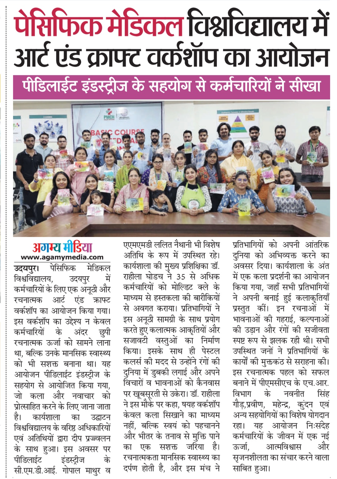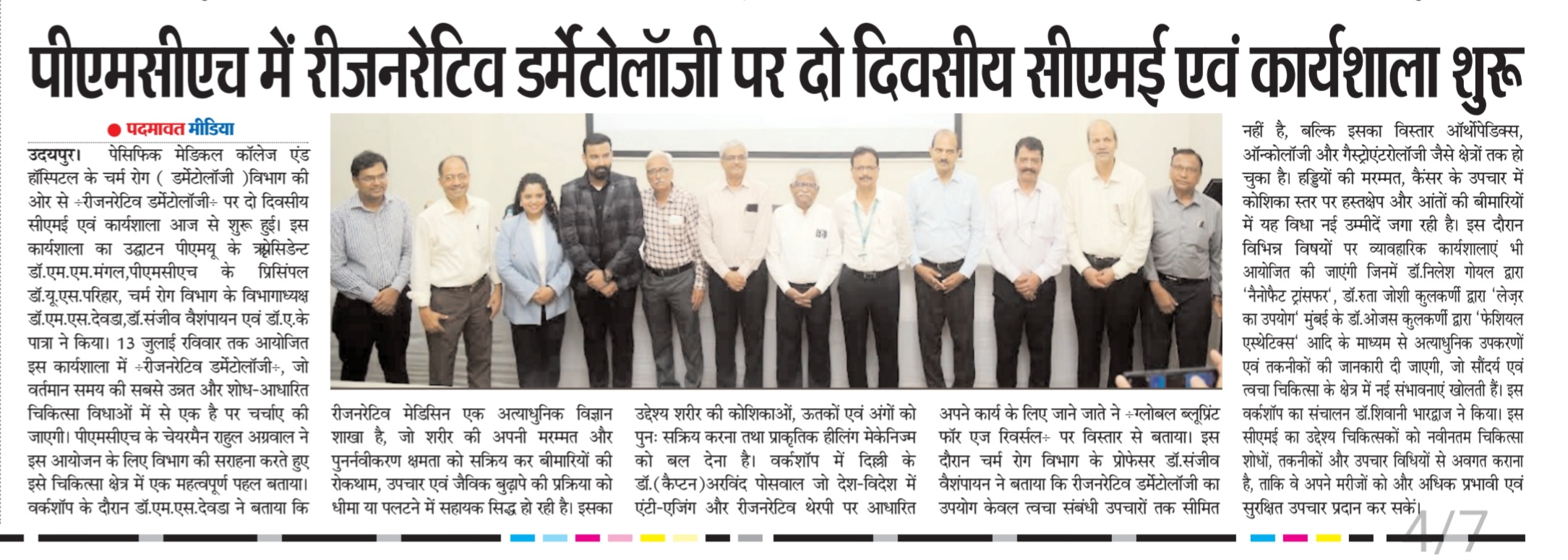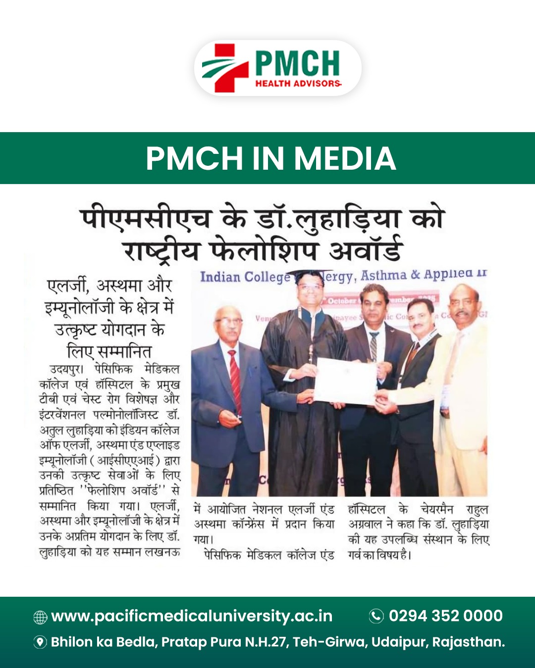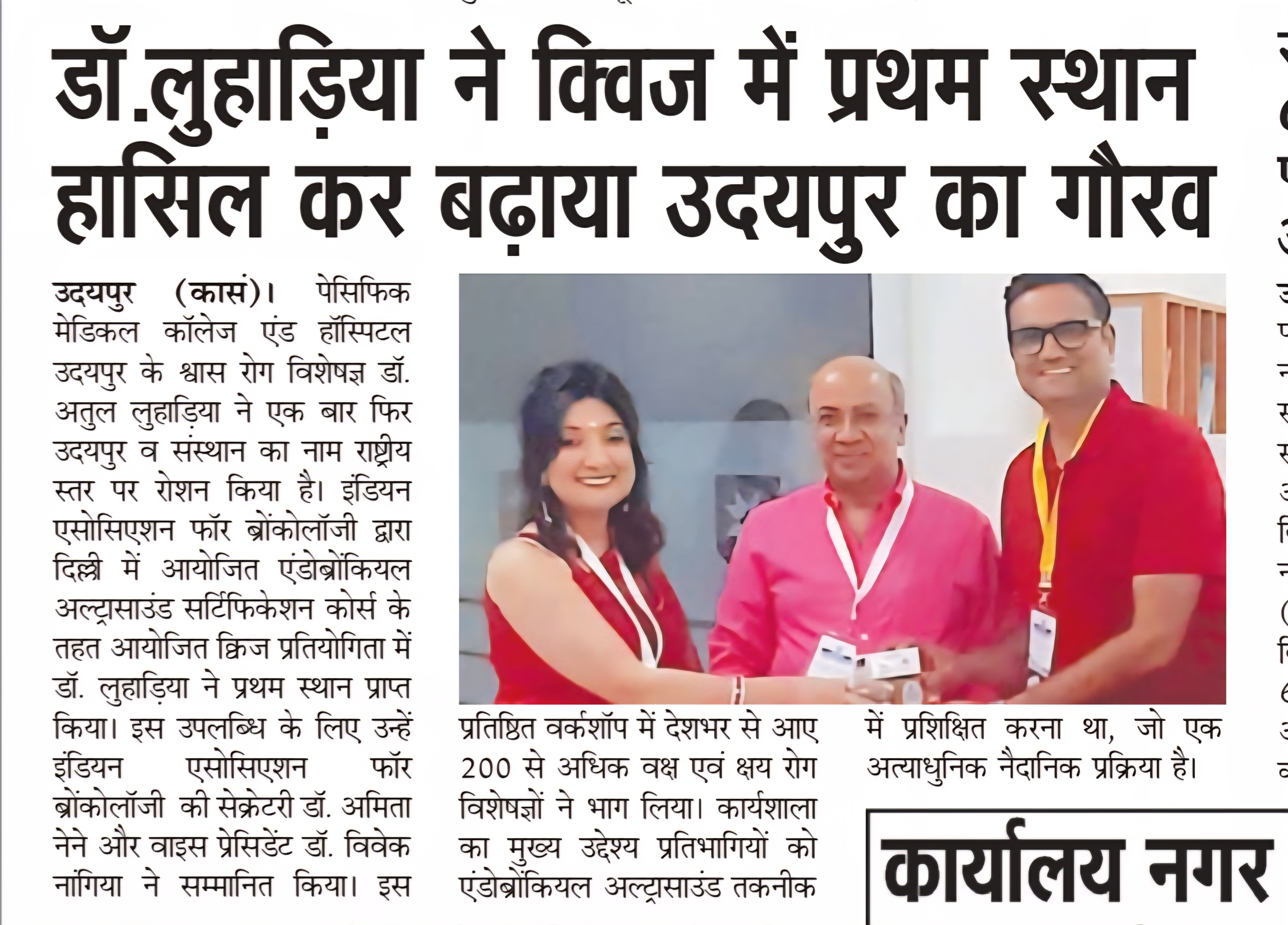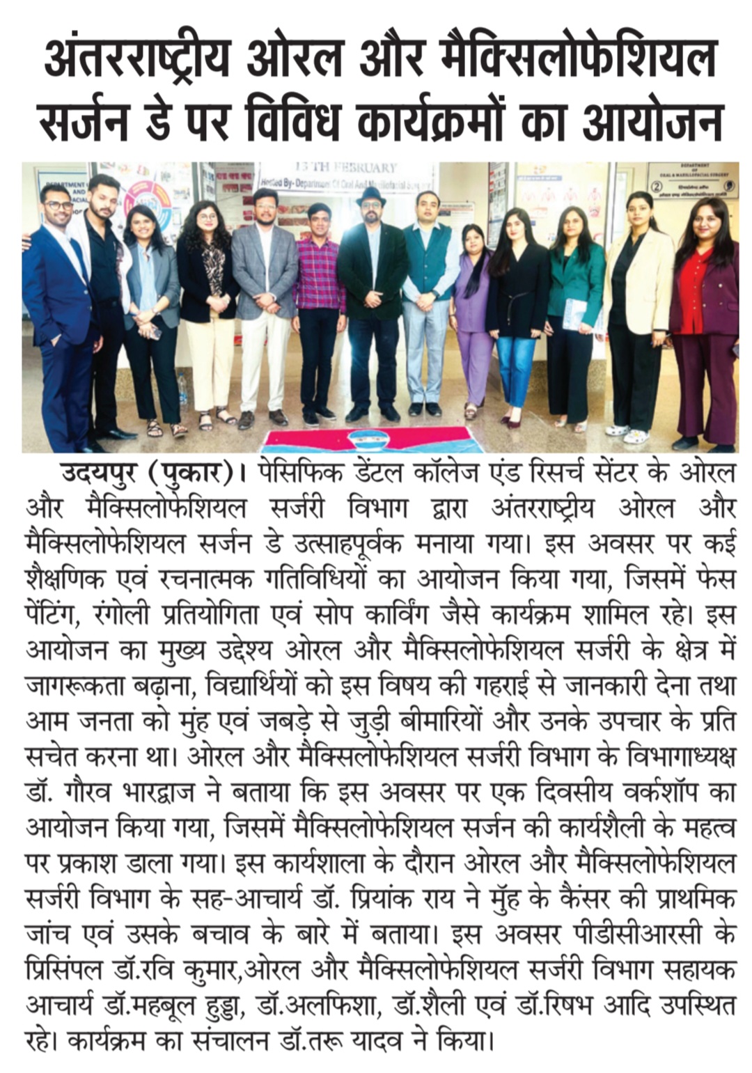 рдкреЗрд╕рд┐рдлрд┐рдХ рдореЗрдбрд┐рдХрд▓ рдХреЙрд▓реЗрдЬ рдПрдВрдб рд╣реЙрд╕реНрдкрд┐рдЯрд▓, рднреАрд▓реЛрдВ рдХрд╛ рдмреЗрджрд▓рд╛ рдПрд╡рдВ рд╢реНрд░реА рдЕрдЧреНрд░рд╡рд╛рд▓ рджрд┐рдЧрдВрдмрд░ рдЬреИрди рдкрдВрдЪрд╛рдпрдд рдХреЗ рд╕рд╛рде рд╕рдВрдпреБрдХреНрдд рд╡рд┐рд╢рд╛рд▓ рдирд┐рд╢реБрд▓реНрдХ рдЪрд┐рдХрд┐рддреНрд╕рд╛ рдкрд░рд╛рдорд░реНрд╢,рдЬрд╛рдВрдЪ рдПрд╡рдВ рднрд░реНрддреА рд╢рд┐рд╡рд┐рд░ 29 рдЬреВрди рдХреЛ рд╢реНрд░реА 1008 рд╕реБрдорддрд┐ рдирд╛рде рдЕрдЧреНрд░рд╡рд╛рд▓ рджрд┐рдЧрдВрдмрд░ рдЬреИрди рдордВрджрд┐рд░ (рдЬреИрди рдмреЛрд░реНрдбрд┐рдЧ) рдзрд╛рдирдордВрдбреА рдЙрджрдпрдкреБрд░ рдХрд┐рдпрд╛ рдЬрд╛рдПрдЧрд╛ред рд╢рд┐рд╡рд┐рд░ рдХреБрдВрддреБрдХреБрдорд╛рд░рдЬреА рдЧрдгрдкрддреЛрдд, рдорд╣реЗрдВрджреНрд░рдЬреА рдЯрд╛рдпрд╛ рдПрд╡рдВ рдкрд╛рд░рд╕рдЬреА рд╕рд┐рдВрдШрд╡реА рджреНрд╡рд╛рд░рд╛ рдкреНрд░рд╛рддрдГ 9.30 рдмрдЬреЗ рдХрд┐рдпрд╛ рдЬрд╛рдПрдЧрд╛ред рдкреАрдПрдорд╕реАрдПрдЪ рдХреЗ рдРрдХреНрдЬрд┐рдХреНрдпреВрдЯрд┐рд╡ рдбреЙрдпрд░реЗрдХреНрдЯрд░ рдЕрдорди рдЕрдЧреНрд░рд╡рд╛рд▓ рдиреЗ рдЙрджрдШрд╛рдЯрди рдмрддрд╛рдпрд╛ рд╢рд┐рд╡рд┐рд░ рдореЗрдВ рдирд┐рд╢реБрд▓реНрдХ рдкрд░рд╛рдорд░реНрд╢ рдПрд╡рдВ рдмреНрд▓рдб рдкреНрд░реЗрд╢рд░ рдХреА рдЬрд╛рдВрдЪ рдХреЗ рд╕рд╛рде рд╣реА рд╢реБрдЧрд░, рдХреЛрд▓реЗрд╕реНрдЯреНрд░реЙрд▓, рд▓реАрд╡рд░, рдХрд┐рдбрдиреА, рдерд╛рдпрд░рд╛рдЗрдб, рдпреВрд░рд┐рдХ рдПрд╕рд┐рдб, рд╕реАрдмреАрд╕реА, рд╕рд┐рд░рдо рдкреАрдПрд╕рдП, рдпреВрд░реАрди рдЖрджрд┐ рдХреА рдЬреЙрдЪ рдирд┐рд╢реБрд▓реНрдХ рдХрд░рд╛рдИ рдЬрд╛рдПрдЧреАред рдЪрдпрдирд┐рдд рд░реЛрдЧрд┐рдпреЛрдВ рдХреЗ рд▓рд┐рдП рдЗрдХреЛ, рдЯреАрдПрдордЯреА, рд╕реЛрдиреЛрдЧреНрд░рд╛рдлреА, рдПрдХреНрд╕рд░реЗ, рдореИрдореЛрдЧреНрд░рд╛рдлреА, рдкреИрдВрдк рд╕реНрдореАрдпрд░ рдЖрджрд┐ рдХреА рдЬрд╛рдВрдЪ рдХреА рдЬрд╛рдПрдЧреАред рд╢рд┐рд╡рд┐рд░ рдореЗрдВ рдбреЙ. рдЕрддреБрд▓ рд▓реБрд╣рд╛рдбрд╝рд┐рдпрд╛, рдбреЙ. рд╕реА.рдкреА. рдкреБрд░реЛрд╣рд┐рдд, рдбреЙ. рдЕрдиреБрд░реЛрдз рд╢рд╛рдВрдбрд┐рд▓реНрдп, рдбреЙ. рд╣рдиреБрд╡рдВрдд рд╕рд┐рдВрд╣ рд░рд╛рдареМрдбрд╝, рдбреЙ. рдирд░реЗрдВрджреНрд░ рдорд▓, рдбреЙ. рдкреБрдиреАрдд,рдбреЙ.рдзрд╡рд▓ рдбреЙ. рдордпрдВрдХ рдЖрдореЗрдЯрд╛, рдбреЙ. рд░реЛрдиреА рдмрд╛рд▓рд╛, рдбреЙ. рд░рд╛рдо рдорд╣рд╛рдЬрди, рдбреЙ. рдордиреЛрдЬ рдЪреБрдВрдбрд╛рд╡рдд, рдбреЙ. рд╕реМрд░рдн рдЧреБрдкреНрддрд╛, рдбреЙ. рд╢рд░реНрдорд╛, рдЕрднрд┐рдЬреАрдд рдХрд╛рдХреЗ, рдбреЙ. рд░рд╛рдЬрдХреБрдорд╛рд░ рд╡рд░реНрдорд╛ рд╕рд╣рд┐рдд рдЕрдиреНрдп рдореЗрдбрд┐рдХрд▓ рд╕реНрдЯреЙрдл рдХреА рдкреВрд░реА рдЯреАрдо рдЕрдкрдиреА рдЙрддреНрдХреГрд╖реНрдЯ рд╕реЗрд╡рд╛рдПрдВ рджреЗрдиреЗ рдХреЗ рд▓рд┐рдП рддрддреНрдкрд░ рд░рд╣реЗрдЧреА ред рд╢рд┐рд╡рд┐рд░ рд╕рдВрдпреЛрдЬрдХ рдорд┐рддреЗрд╢ рдПрд╡ рдЕрдЬрдп рдиреЗ рдмрддрд╛рдпрд╛ рдХрд┐ рдЪрдпрдирд┐рдд рд░реЛрдЧрд┐рдпреЛ рдХреЗ рд▓рд┐рдП рд╡рд┐рд╢реЗрд╖ рдирд┐рд╢реБрд▓реНрдХ рд╕рд░реНрдЬрд┐рдХрд▓ рд╕реЗрд╡рд╛рдУ рдХреЗ рддрд╣рдд рдореЛрддрд┐рдпрд╛рдмрд┐рдВрдж рдСрдкрд░реЗрд╢рди (рд▓реЗрдВрд╕ рд╕рд╣рд┐рдд),рд╣рд░реНрдирд┐рдпрд╛, рдЕрдкреЗрдВрдбрд┐рдХреНрд╕, рдирд╛рдХ рдХрд╛р