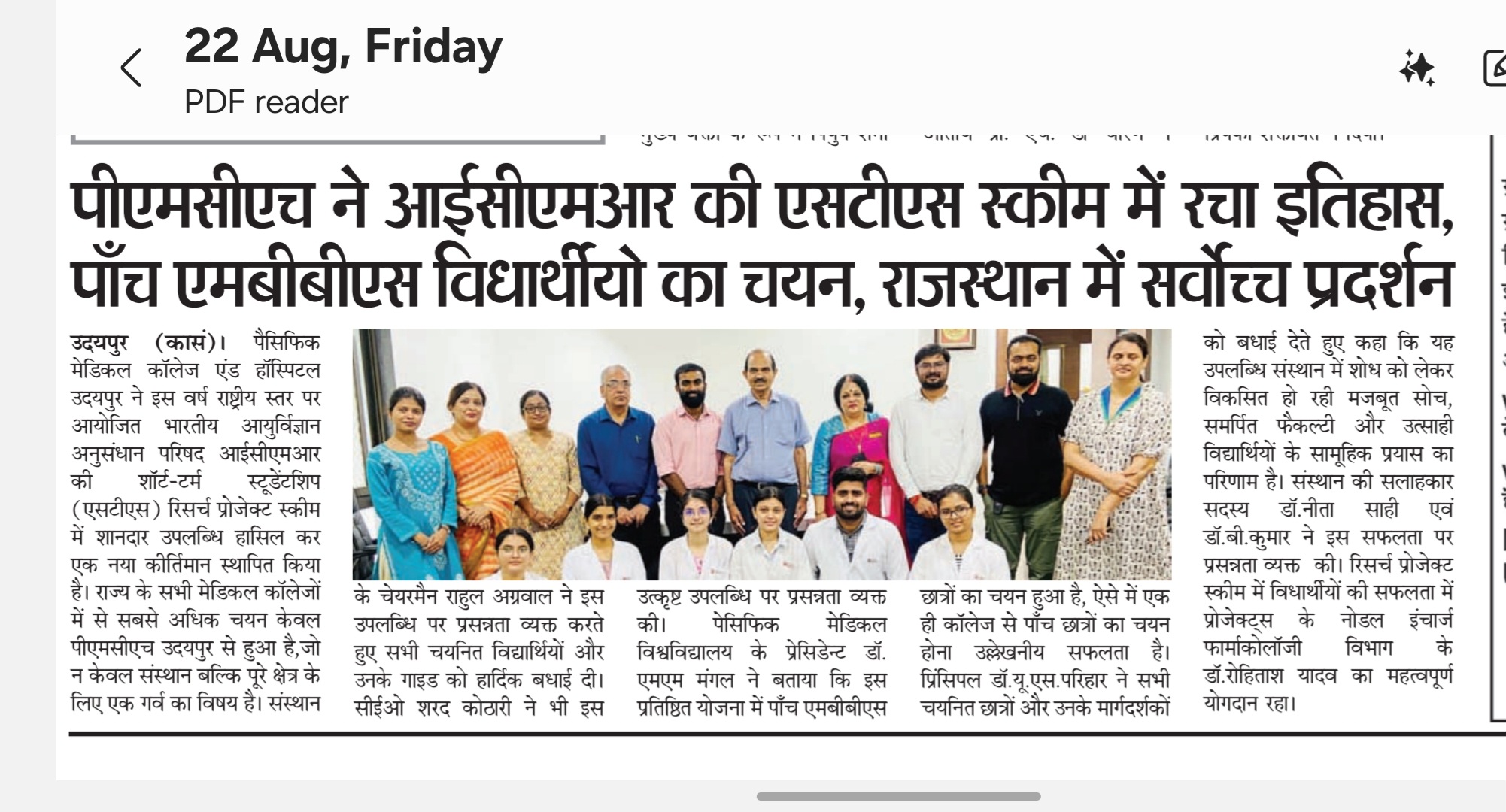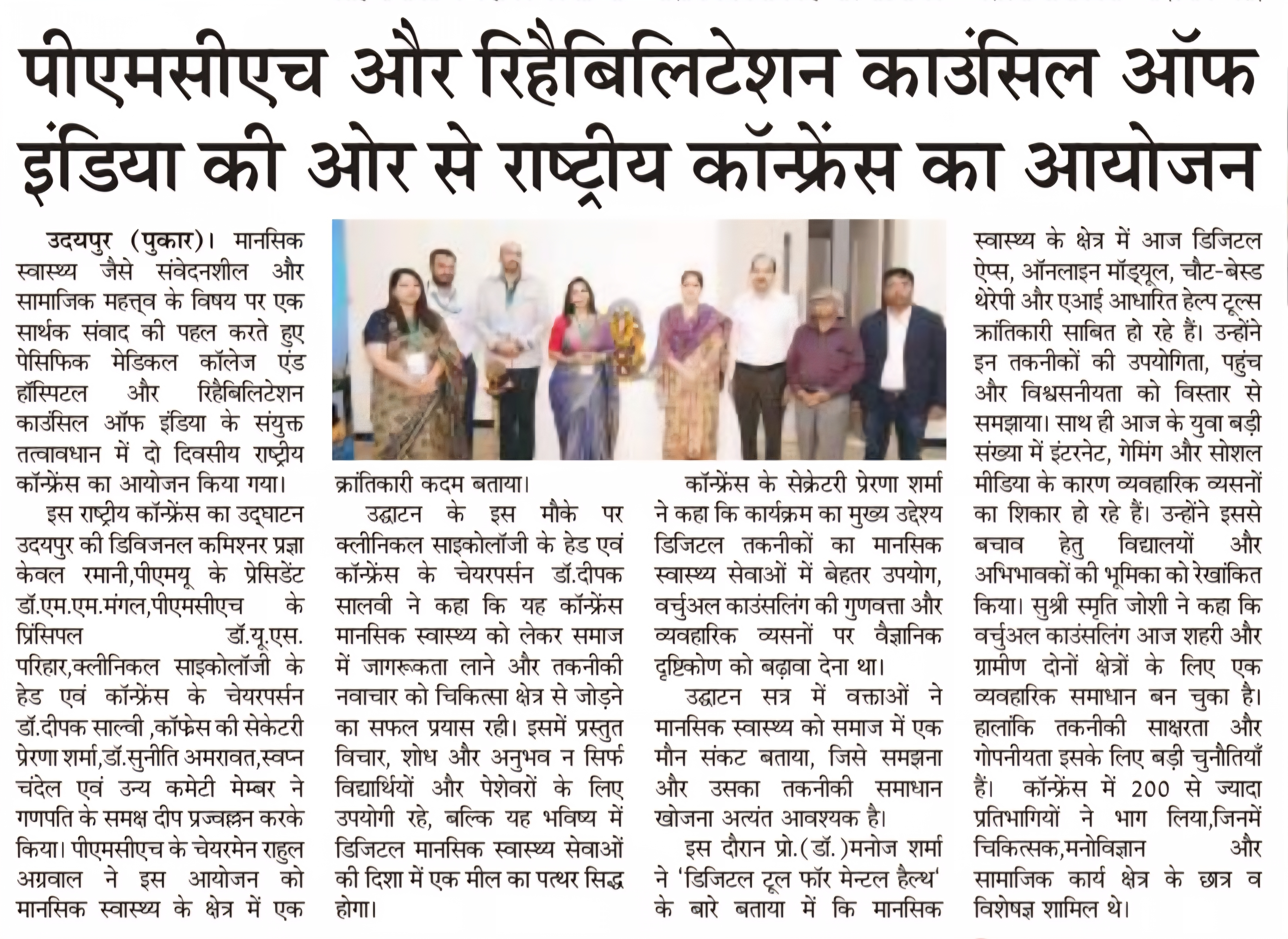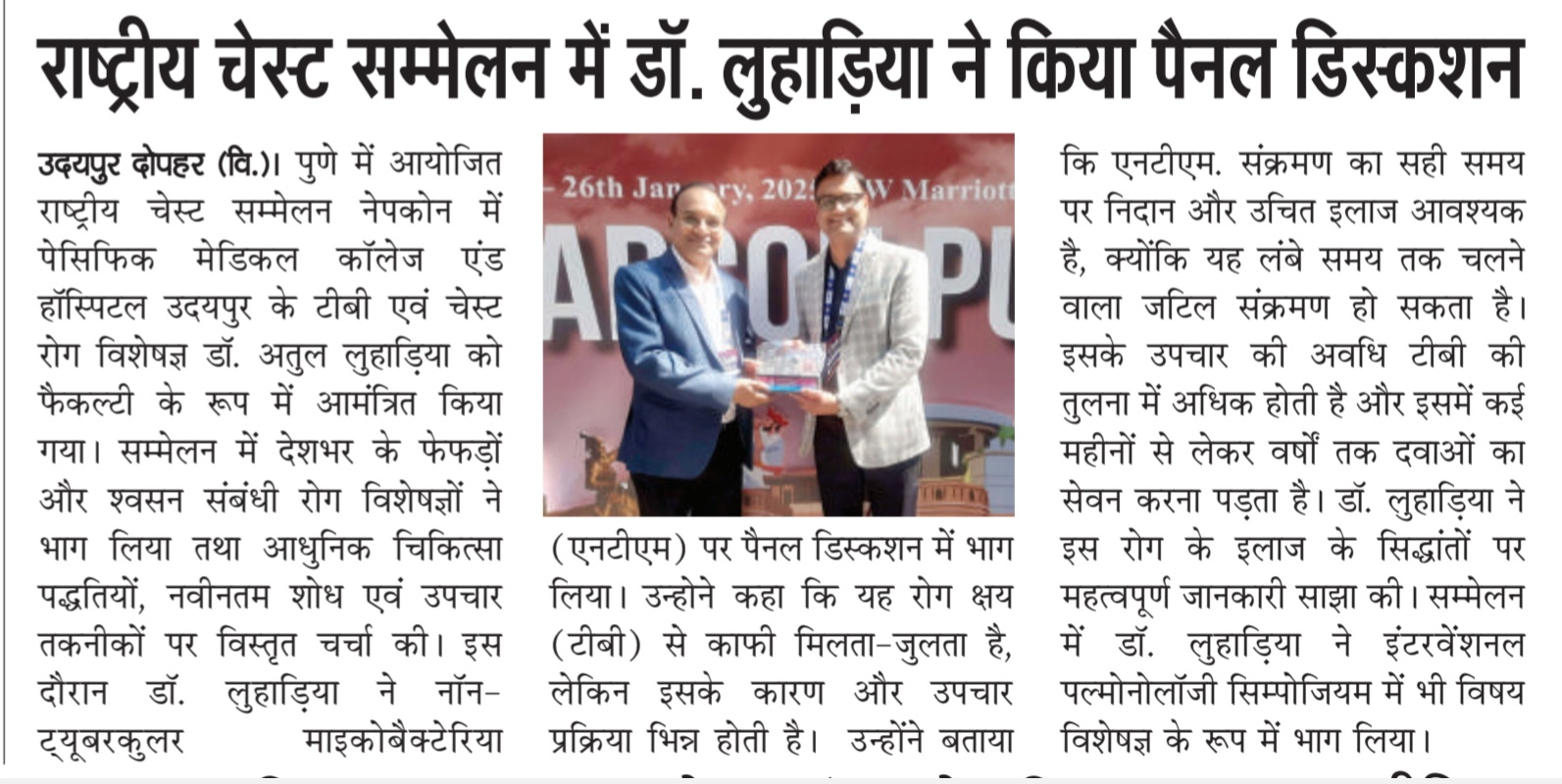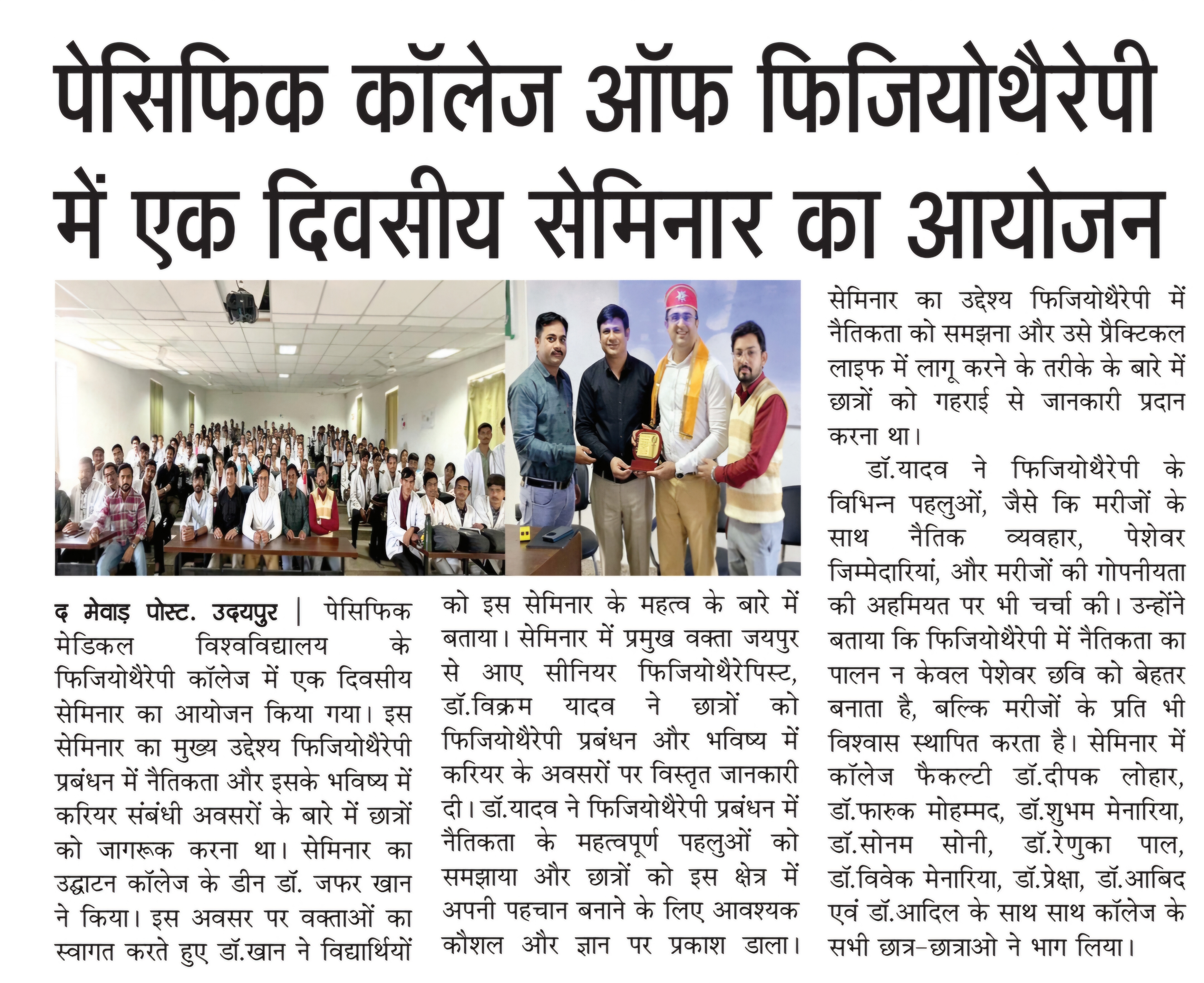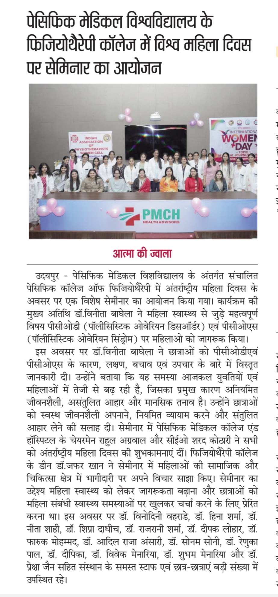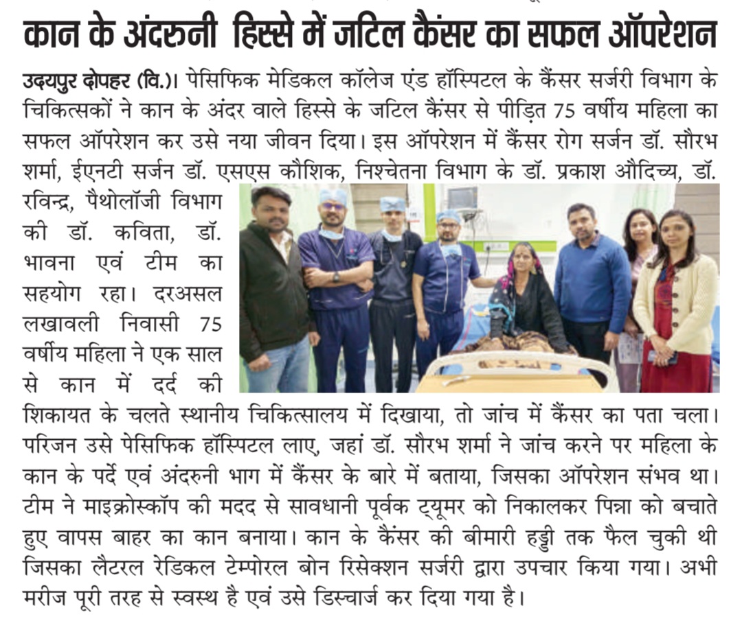 рдкреЗрд╕рд┐рдлрд┐рдХ рдореЗрдбрд┐рдХрд▓ рдХреЙрд▓реЗрдЬ рдПрдВрдб рд╣реЙрд╕реНрдкрд┐рдЯрд▓, рднреАрд▓реЛрдВ рдХрд╛ рдмреЗрджрд▓рд╛ рдПрд╡рдВ рд╢реНрд░реА рдЕрдЧреНрд░рд╡рд╛рд▓ рджрд┐рдЧрдВрдмрд░ рдЬреИрди рдкрдВрдЪрд╛рдпрдд рдХреЗ рд╕рд╛рде рд╕рдВрдпреБрдХреНрдд рд╡рд┐рд╢рд╛рд▓ рдирд┐рд╢реБрд▓реНрдХ рдЪрд┐рдХрд┐рддреНрд╕рд╛ рдкрд░рд╛рдорд░реНрд╢,рдЬрд╛рдВрдЪ рдПрд╡рдВ рднрд░реНрддреА рд╢рд┐рд╡рд┐рд░ 29 рдЬреВрди рдХреЛ рд╢реНрд░реА 1008 рд╕реБрдорддрд┐ рдирд╛рде рдЕрдЧреНрд░рд╡рд╛рд▓ рджрд┐рдЧрдВрдмрд░ рдЬреИрди рдордВрджрд┐рд░ (рдЬреИрди рдмреЛрд░реНрдбрд┐рдЧ) рдзрд╛рдирдордВрдбреА рдЙрджрдпрдкреБрд░ рдХрд┐рдпрд╛ рдЬрд╛рдПрдЧрд╛ред рд╢рд┐рд╡рд┐рд░ рдХреБрдВрддреБрдХреБрдорд╛рд░рдЬреА рдЧрдгрдкрддреЛрдд, рдорд╣реЗрдВрджреНрд░рдЬреА рдЯрд╛рдпрд╛ рдПрд╡рдВ рдкрд╛рд░рд╕рдЬреА рд╕рд┐рдВрдШрд╡реА рджреНрд╡рд╛рд░рд╛ рдкреНрд░рд╛рддрдГ 9.30 рдмрдЬреЗ рдХрд┐рдпрд╛ рдЬрд╛рдПрдЧрд╛ред рдкреАрдПрдорд╕реАрдПрдЪ рдХреЗ рдРрдХреНрдЬрд┐рдХреНрдпреВрдЯрд┐рд╡ рдбреЙрдпрд░реЗрдХреНрдЯрд░ рдЕрдорди рдЕрдЧреНрд░рд╡рд╛рд▓ рдиреЗ рдЙрджрдШрд╛рдЯрди рдмрддрд╛рдпрд╛ рд╢рд┐рд╡рд┐рд░ рдореЗрдВ рдирд┐рд╢реБрд▓реНрдХ рдкрд░рд╛рдорд░реНрд╢ рдПрд╡рдВ рдмреНрд▓рдб рдкреНрд░реЗрд╢рд░ рдХреА рдЬрд╛рдВрдЪ рдХреЗ рд╕рд╛рде рд╣реА рд╢реБрдЧрд░, рдХреЛрд▓реЗрд╕реНрдЯреНрд░реЙрд▓, рд▓реАрд╡рд░, рдХрд┐рдбрдиреА, рдерд╛рдпрд░рд╛рдЗрдб, рдпреВрд░рд┐рдХ рдПрд╕рд┐рдб, рд╕реАрдмреАрд╕реА, рд╕рд┐рд░рдо рдкреАрдПрд╕рдП, рдпреВрд░реАрди рдЖрджрд┐ рдХреА рдЬреЙрдЪ рдирд┐рд╢реБрд▓реНрдХ рдХрд░рд╛рдИ рдЬрд╛рдПрдЧреАред рдЪрдпрдирд┐рдд рд░реЛрдЧрд┐рдпреЛрдВ рдХреЗ рд▓рд┐рдП рдЗрдХреЛ, рдЯреАрдПрдордЯреА, рд╕реЛрдиреЛрдЧреНрд░рд╛рдлреА, рдПрдХреНрд╕рд░реЗ, рдореИрдореЛрдЧреНрд░рд╛рдлреА, рдкреИрдВрдк рд╕реНрдореАрдпрд░ рдЖрджрд┐ рдХреА рдЬрд╛рдВрдЪ рдХреА рдЬрд╛рдПрдЧреАред рд╢рд┐рд╡рд┐рд░ рдореЗрдВ рдбреЙ. рдЕрддреБрд▓ рд▓реБрд╣рд╛рдбрд╝рд┐рдпрд╛, рдбреЙ. рд╕реА.рдкреА. рдкреБрд░реЛрд╣рд┐рдд, рдбреЙ. рдЕрдиреБрд░реЛрдз рд╢рд╛рдВрдбрд┐рд▓реНрдп, рдбреЙ. рд╣рдиреБрд╡рдВрдд рд╕рд┐рдВрд╣ рд░рд╛рдареМрдбрд╝, рдбреЙ. рдирд░реЗрдВрджреНрд░ рдорд▓, рдбреЙ. рдкреБрдиреАрдд,рдбреЙ.рдзрд╡рд▓ рдбреЙ. рдордпрдВрдХ рдЖрдореЗрдЯрд╛, рдбреЙ. рд░реЛрдиреА рдмрд╛рд▓рд╛, рдбреЙ. рд░рд╛рдо рдорд╣рд╛рдЬрди, рдбреЙ. рдордиреЛрдЬ рдЪреБрдВрдбрд╛рд╡рдд, рдбреЙ. рд╕реМрд░рдн рдЧреБрдкреНрддрд╛, рдбреЙ. рд╢рд░реНрдорд╛, рдЕрднрд┐рдЬреАрдд рдХрд╛рдХреЗ, рдбреЙ. рд░рд╛рдЬрдХреБрдорд╛рд░ рд╡рд░реНрдорд╛ рд╕рд╣рд┐рдд рдЕрдиреНрдп рдореЗрдбрд┐рдХрд▓ рд╕реНрдЯреЙрдл рдХреА рдкреВрд░реА рдЯреАрдо рдЕрдкрдиреА рдЙрддреНрдХреГрд╖реНрдЯ рд╕реЗрд╡рд╛рдПрдВ рджреЗрдиреЗ рдХреЗ рд▓рд┐рдП рддрддреНрдкрд░ рд░рд╣реЗрдЧреА ред рд╢рд┐рд╡рд┐рд░ рд╕рдВрдпреЛрдЬрдХ рдорд┐рддреЗрд╢ рдПрд╡ рдЕрдЬрдп рдиреЗ рдмрддрд╛рдпрд╛ рдХрд┐ рдЪрдпрдирд┐рдд рд░реЛрдЧрд┐рдпреЛ рдХреЗ рд▓рд┐рдП рд╡рд┐рд╢реЗрд╖ рдирд┐рд╢реБрд▓реНрдХ рд╕рд░реНрдЬрд┐рдХрд▓ рд╕реЗрд╡рд╛рдУ рдХреЗ рддрд╣рдд рдореЛрддрд┐рдпрд╛рдмрд┐рдВрдж рдСрдкрд░реЗрд╢рди (рд▓реЗрдВрд╕ рд╕рд╣рд┐рдд),рд╣рд░реНрдирд┐рдпрд╛, рдЕрдкреЗрдВрдбрд┐рдХреНрд╕, рдирд╛рдХ рдХрд╛р
