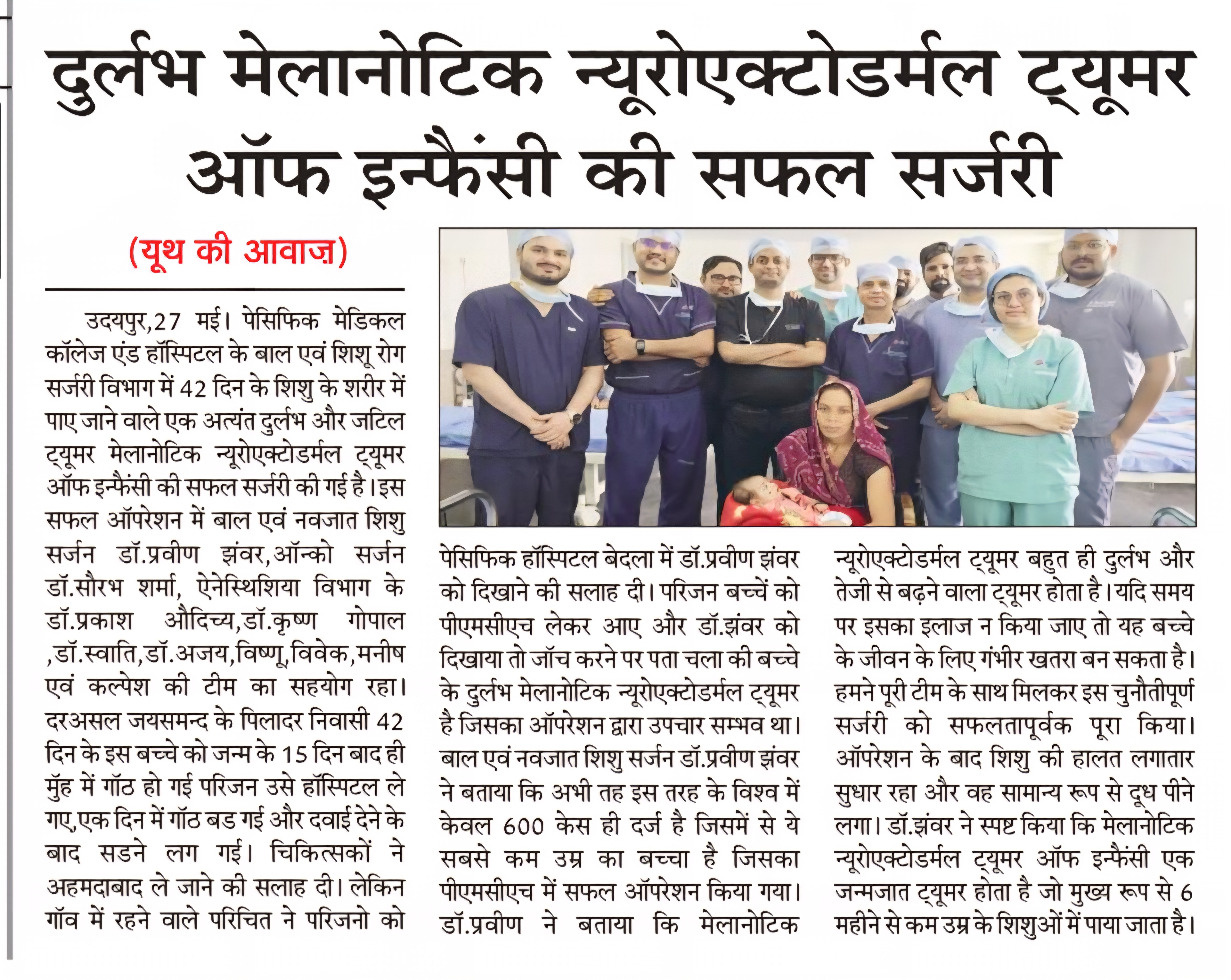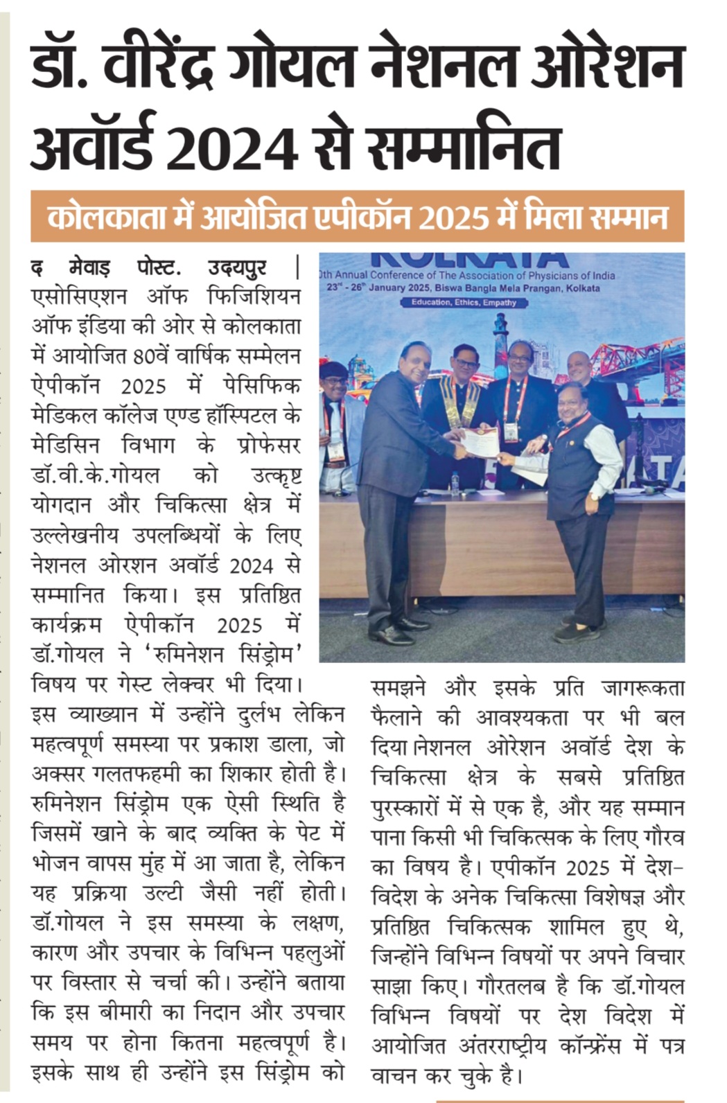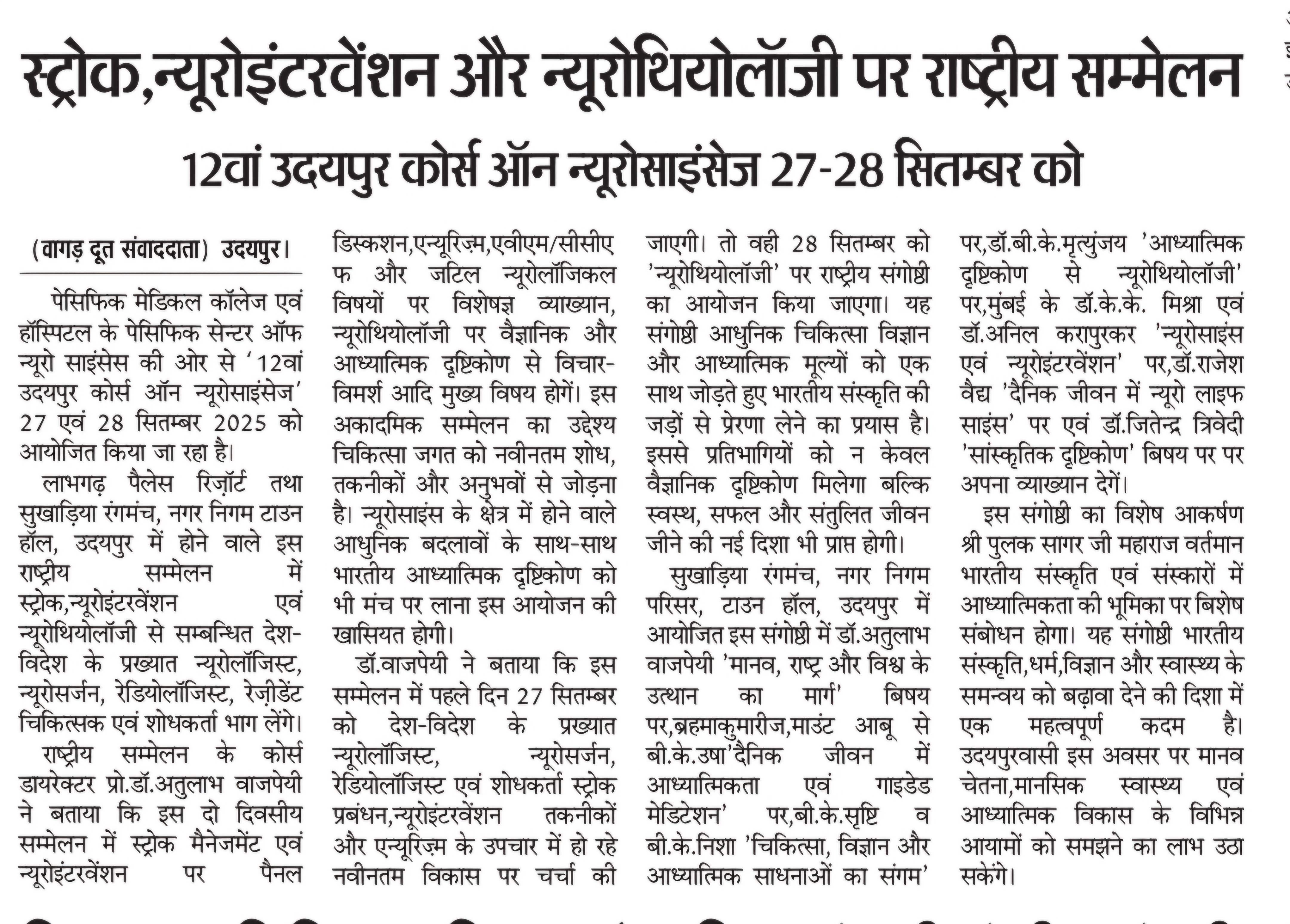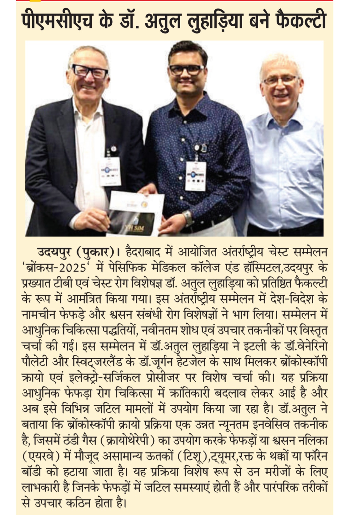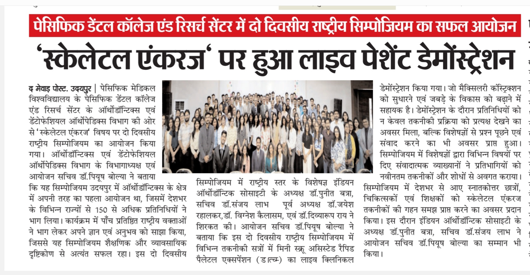 рдкреЗрд╕рд┐рдлрд┐рдХ рдореЗрдбрд┐рдХрд▓ рдХреЙрд▓реЗрдЬ рдПрдВрдб рд╣реЙрд╕реНрдкрд┐рдЯрд▓, рднреАрд▓реЛрдВ рдХрд╛ рдмреЗрджрд▓рд╛ рдПрд╡рдВ рд╢реНрд░реА рдЕрдЧреНрд░рд╡рд╛рд▓ рджрд┐рдЧрдВрдмрд░ рдЬреИрди рдкрдВрдЪрд╛рдпрдд рдХреЗ рд╕рд╛рде рд╕рдВрдпреБрдХреНрдд рд╡рд┐рд╢рд╛рд▓ рдирд┐рд╢реБрд▓реНрдХ рдЪрд┐рдХрд┐рддреНрд╕рд╛ рдкрд░рд╛рдорд░реНрд╢,рдЬрд╛рдВрдЪ рдПрд╡рдВ рднрд░реНрддреА рд╢рд┐рд╡рд┐рд░ 29 рдЬреВрди рдХреЛ рд╢реНрд░реА 1008 рд╕реБрдорддрд┐ рдирд╛рде рдЕрдЧреНрд░рд╡рд╛рд▓ рджрд┐рдЧрдВрдмрд░ рдЬреИрди рдордВрджрд┐рд░ (рдЬреИрди рдмреЛрд░реНрдбрд┐рдЧ) рдзрд╛рдирдордВрдбреА рдЙрджрдпрдкреБрд░ рдХрд┐рдпрд╛ рдЬрд╛рдПрдЧрд╛ред рд╢рд┐рд╡рд┐рд░ рдХреБрдВрддреБрдХреБрдорд╛рд░рдЬреА рдЧрдгрдкрддреЛрдд, рдорд╣реЗрдВрджреНрд░рдЬреА рдЯрд╛рдпрд╛ рдПрд╡рдВ рдкрд╛рд░рд╕рдЬреА рд╕рд┐рдВрдШрд╡реА рджреНрд╡рд╛рд░рд╛ рдкреНрд░рд╛рддрдГ 9.30 рдмрдЬреЗ рдХрд┐рдпрд╛ рдЬрд╛рдПрдЧрд╛ред рдкреАрдПрдорд╕реАрдПрдЪ рдХреЗ рдРрдХреНрдЬрд┐рдХреНрдпреВрдЯрд┐рд╡ рдбреЙрдпрд░реЗрдХреНрдЯрд░ рдЕрдорди рдЕрдЧреНрд░рд╡рд╛рд▓ рдиреЗ рдЙрджрдШрд╛рдЯрди рдмрддрд╛рдпрд╛ рд╢рд┐рд╡рд┐рд░ рдореЗрдВ рдирд┐рд╢реБрд▓реНрдХ рдкрд░рд╛рдорд░реНрд╢ рдПрд╡рдВ рдмреНрд▓рдб рдкреНрд░реЗрд╢рд░ рдХреА рдЬрд╛рдВрдЪ рдХреЗ рд╕рд╛рде рд╣реА рд╢реБрдЧрд░, рдХреЛрд▓реЗрд╕реНрдЯреНрд░реЙрд▓, рд▓реАрд╡рд░, рдХрд┐рдбрдиреА, рдерд╛рдпрд░рд╛рдЗрдб, рдпреВрд░рд┐рдХ рдПрд╕рд┐рдб, рд╕реАрдмреАрд╕реА, рд╕рд┐рд░рдо рдкреАрдПрд╕рдП, рдпреВрд░реАрди рдЖрджрд┐ рдХреА рдЬреЙрдЪ рдирд┐рд╢реБрд▓реНрдХ рдХрд░рд╛рдИ рдЬрд╛рдПрдЧреАред рдЪрдпрдирд┐рдд рд░реЛрдЧрд┐рдпреЛрдВ рдХреЗ рд▓рд┐рдП рдЗрдХреЛ, рдЯреАрдПрдордЯреА, рд╕реЛрдиреЛрдЧреНрд░рд╛рдлреА, рдПрдХреНрд╕рд░реЗ, рдореИрдореЛрдЧреНрд░рд╛рдлреА, рдкреИрдВрдк рд╕реНрдореАрдпрд░ рдЖрджрд┐ рдХреА рдЬрд╛рдВрдЪ рдХреА рдЬрд╛рдПрдЧреАред рд╢рд┐рд╡рд┐рд░ рдореЗрдВ рдбреЙ. рдЕрддреБрд▓ рд▓реБрд╣рд╛рдбрд╝рд┐рдпрд╛, рдбреЙ. рд╕реА.рдкреА. рдкреБрд░реЛрд╣рд┐рдд, рдбреЙ. рдЕрдиреБрд░реЛрдз рд╢рд╛рдВрдбрд┐рд▓реНрдп, рдбреЙ. рд╣рдиреБрд╡рдВрдд рд╕рд┐рдВрд╣ рд░рд╛рдареМрдбрд╝, рдбреЙ. рдирд░реЗрдВрджреНрд░ рдорд▓, рдбреЙ. рдкреБрдиреАрдд,рдбреЙ.рдзрд╡рд▓ рдбреЙ. рдордпрдВрдХ рдЖрдореЗрдЯрд╛, рдбреЙ. рд░реЛрдиреА рдмрд╛рд▓рд╛, рдбреЙ. рд░рд╛рдо рдорд╣рд╛рдЬрди, рдбреЙ. рдордиреЛрдЬ рдЪреБрдВрдбрд╛рд╡рдд, рдбреЙ. рд╕реМрд░рдн рдЧреБрдкреНрддрд╛, рдбреЙ. рд╢рд░реНрдорд╛, рдЕрднрд┐рдЬреАрдд рдХрд╛рдХреЗ, рдбреЙ. рд░рд╛рдЬрдХреБрдорд╛рд░ рд╡рд░реНрдорд╛ рд╕рд╣рд┐рдд рдЕрдиреНрдп рдореЗрдбрд┐рдХрд▓ рд╕реНрдЯреЙрдл рдХреА рдкреВрд░реА рдЯреАрдо рдЕрдкрдиреА рдЙрддреНрдХреГрд╖реНрдЯ рд╕реЗрд╡рд╛рдПрдВ рджреЗрдиреЗ рдХреЗ рд▓рд┐рдП рддрддреНрдкрд░ рд░рд╣реЗрдЧреА ред рд╢рд┐рд╡рд┐рд░ рд╕рдВрдпреЛрдЬрдХ рдорд┐рддреЗрд╢ рдПрд╡ рдЕрдЬрдп рдиреЗ рдмрддрд╛рдпрд╛ рдХрд┐ рдЪрдпрдирд┐рдд рд░реЛрдЧрд┐рдпреЛ рдХреЗ рд▓рд┐рдП рд╡рд┐рд╢реЗрд╖ рдирд┐рд╢реБрд▓реНрдХ рд╕рд░реНрдЬрд┐рдХрд▓ рд╕реЗрд╡рд╛рдУ рдХреЗ рддрд╣рдд рдореЛрддрд┐рдпрд╛рдмрд┐рдВрдж рдСрдкрд░реЗрд╢рди (рд▓реЗрдВрд╕ рд╕рд╣рд┐рдд),рд╣рд░реНрдирд┐рдпрд╛, рдЕрдкреЗрдВрдбрд┐рдХреНрд╕, рдирд╛рдХ рдХрд╛р