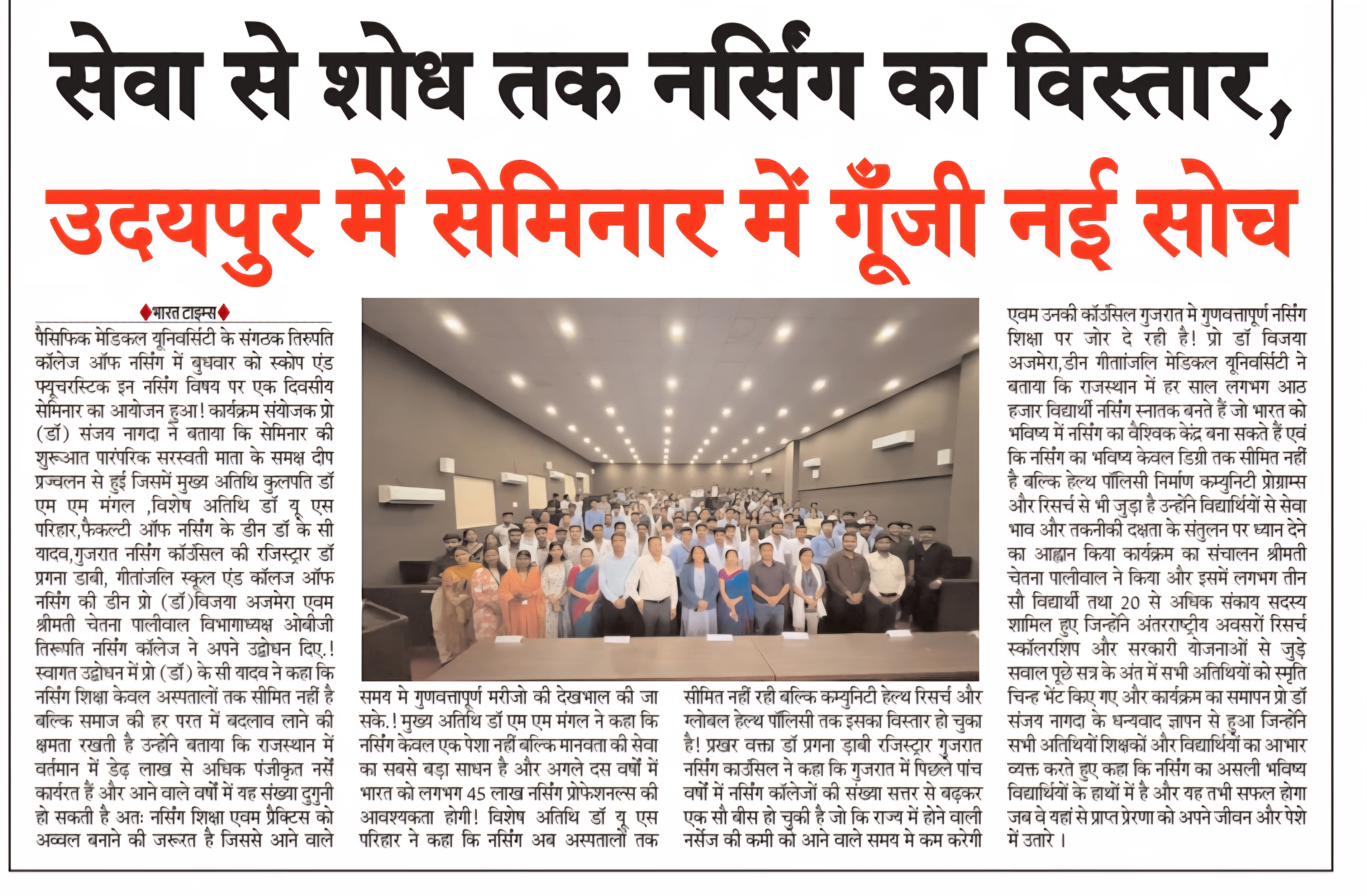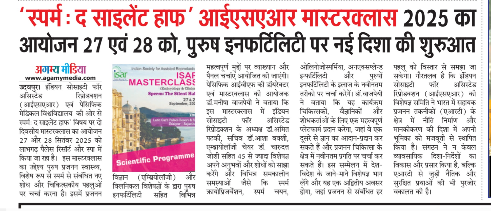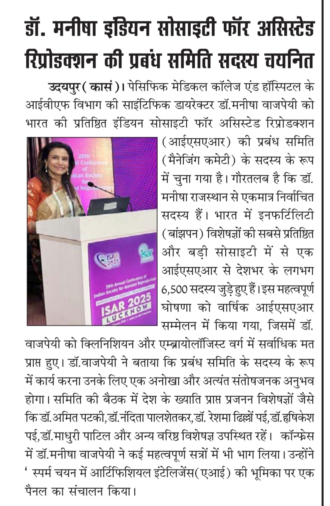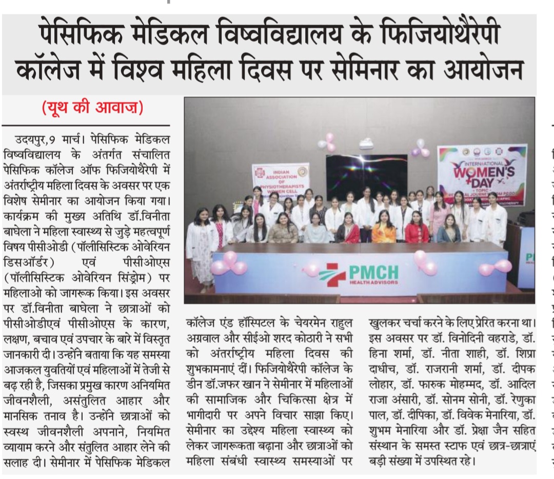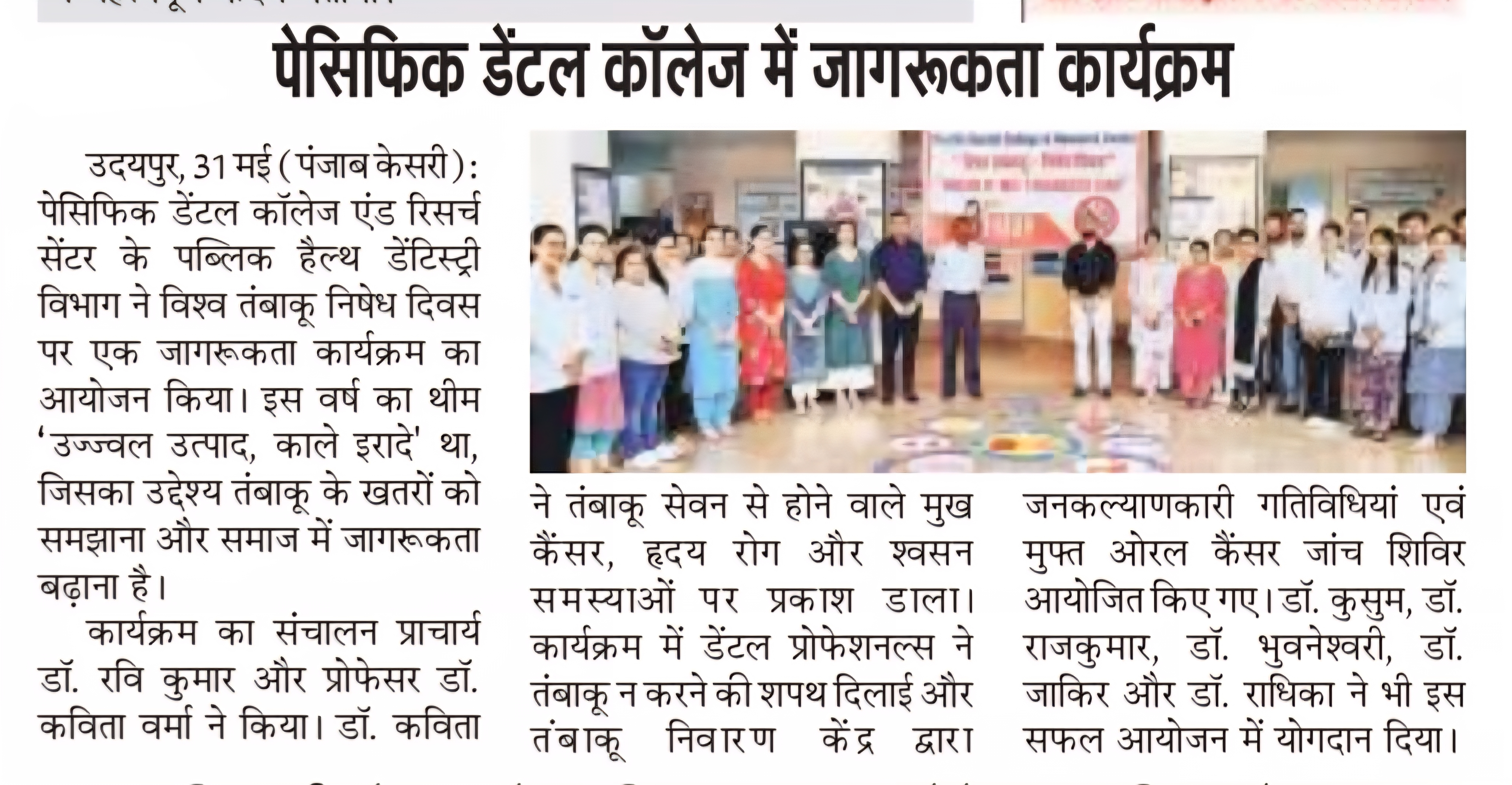 рдкреЗрд╕рд┐рдлрд┐рдХ рдореЗрдбрд┐рдХрд▓ рдХреЙрд▓реЗрдЬ рдПрдВрдб рд╣реЙрд╕реНрдкрд┐рдЯрд▓, рднреАрд▓реЛрдВ рдХрд╛ рдмреЗрджрд▓рд╛ рдПрд╡рдВ рд╢реНрд░реА рдЕрдЧреНрд░рд╡рд╛рд▓ рджрд┐рдЧрдВрдмрд░ рдЬреИрди рдкрдВрдЪрд╛рдпрдд рдХреЗ рд╕рд╛рде рд╕рдВрдпреБрдХреНрдд рд╡рд┐рд╢рд╛рд▓ рдирд┐рд╢реБрд▓реНрдХ рдЪрд┐рдХрд┐рддреНрд╕рд╛ рдкрд░рд╛рдорд░реНрд╢,рдЬрд╛рдВрдЪ рдПрд╡рдВ рднрд░реНрддреА рд╢рд┐рд╡рд┐рд░ 29 рдЬреВрди рдХреЛ рд╢реНрд░реА 1008 рд╕реБрдорддрд┐ рдирд╛рде рдЕрдЧреНрд░рд╡рд╛рд▓ рджрд┐рдЧрдВрдмрд░ рдЬреИрди рдордВрджрд┐рд░ (рдЬреИрди рдмреЛрд░реНрдбрд┐рдЧ) рдзрд╛рдирдордВрдбреА рдЙрджрдпрдкреБрд░ рдХрд┐рдпрд╛ рдЬрд╛рдПрдЧрд╛ред рд╢рд┐рд╡рд┐рд░ рдХреБрдВрддреБрдХреБрдорд╛рд░рдЬреА рдЧрдгрдкрддреЛрдд, рдорд╣реЗрдВрджреНрд░рдЬреА рдЯрд╛рдпрд╛ рдПрд╡рдВ рдкрд╛рд░рд╕рдЬреА рд╕рд┐рдВрдШрд╡реА рджреНрд╡рд╛рд░рд╛ рдкреНрд░рд╛рддрдГ 9.30 рдмрдЬреЗ рдХрд┐рдпрд╛ рдЬрд╛рдПрдЧрд╛ред рдкреАрдПрдорд╕реАрдПрдЪ рдХреЗ рдРрдХреНрдЬрд┐рдХреНрдпреВрдЯрд┐рд╡ рдбреЙрдпрд░реЗрдХреНрдЯрд░ рдЕрдорди рдЕрдЧреНрд░рд╡рд╛рд▓ рдиреЗ рдЙрджрдШрд╛рдЯрди рдмрддрд╛рдпрд╛ рд╢рд┐рд╡рд┐рд░ рдореЗрдВ рдирд┐рд╢реБрд▓реНрдХ рдкрд░рд╛рдорд░реНрд╢ рдПрд╡рдВ рдмреНрд▓рдб рдкреНрд░реЗрд╢рд░ рдХреА рдЬрд╛рдВрдЪ рдХреЗ рд╕рд╛рде рд╣реА рд╢реБрдЧрд░, рдХреЛрд▓реЗрд╕реНрдЯреНрд░реЙрд▓, рд▓реАрд╡рд░, рдХрд┐рдбрдиреА, рдерд╛рдпрд░рд╛рдЗрдб, рдпреВрд░рд┐рдХ рдПрд╕рд┐рдб, рд╕реАрдмреАрд╕реА, рд╕рд┐рд░рдо рдкреАрдПрд╕рдП, рдпреВрд░реАрди рдЖрджрд┐ рдХреА рдЬреЙрдЪ рдирд┐рд╢реБрд▓реНрдХ рдХрд░рд╛рдИ рдЬрд╛рдПрдЧреАред рдЪрдпрдирд┐рдд рд░реЛрдЧрд┐рдпреЛрдВ рдХреЗ рд▓рд┐рдП рдЗрдХреЛ, рдЯреАрдПрдордЯреА, рд╕реЛрдиреЛрдЧреНрд░рд╛рдлреА, рдПрдХреНрд╕рд░реЗ, рдореИрдореЛрдЧреНрд░рд╛рдлреА, рдкреИрдВрдк рд╕реНрдореАрдпрд░ рдЖрджрд┐ рдХреА рдЬрд╛рдВрдЪ рдХреА рдЬрд╛рдПрдЧреАред рд╢рд┐рд╡рд┐рд░ рдореЗрдВ рдбреЙ. рдЕрддреБрд▓ рд▓реБрд╣рд╛рдбрд╝рд┐рдпрд╛, рдбреЙ. рд╕реА.рдкреА. рдкреБрд░реЛрд╣рд┐рдд, рдбреЙ. рдЕрдиреБрд░реЛрдз рд╢рд╛рдВрдбрд┐рд▓реНрдп, рдбреЙ. рд╣рдиреБрд╡рдВрдд рд╕рд┐рдВрд╣ рд░рд╛рдареМрдбрд╝, рдбреЙ. рдирд░реЗрдВрджреНрд░ рдорд▓, рдбреЙ. рдкреБрдиреАрдд,рдбреЙ.рдзрд╡рд▓ рдбреЙ. рдордпрдВрдХ рдЖрдореЗрдЯрд╛, рдбреЙ. рд░реЛрдиреА рдмрд╛рд▓рд╛, рдбреЙ. рд░рд╛рдо рдорд╣рд╛рдЬрди, рдбреЙ. рдордиреЛрдЬ рдЪреБрдВрдбрд╛рд╡рдд, рдбреЙ. рд╕реМрд░рдн рдЧреБрдкреНрддрд╛, рдбреЙ. рд╢рд░реНрдорд╛, рдЕрднрд┐рдЬреАрдд рдХрд╛рдХреЗ, рдбреЙ. рд░рд╛рдЬрдХреБрдорд╛рд░ рд╡рд░реНрдорд╛ рд╕рд╣рд┐рдд рдЕрдиреНрдп рдореЗрдбрд┐рдХрд▓ рд╕реНрдЯреЙрдл рдХреА рдкреВрд░реА рдЯреАрдо рдЕрдкрдиреА рдЙрддреНрдХреГрд╖реНрдЯ рд╕реЗрд╡рд╛рдПрдВ рджреЗрдиреЗ рдХреЗ рд▓рд┐рдП рддрддреНрдкрд░ рд░рд╣реЗрдЧреА ред рд╢рд┐рд╡рд┐рд░ рд╕рдВрдпреЛрдЬрдХ рдорд┐рддреЗрд╢ рдПрд╡ рдЕрдЬрдп рдиреЗ рдмрддрд╛рдпрд╛ рдХрд┐ рдЪрдпрдирд┐рдд рд░реЛрдЧрд┐рдпреЛ рдХреЗ рд▓рд┐рдП рд╡рд┐рд╢реЗрд╖ рдирд┐рд╢реБрд▓реНрдХ рд╕рд░реНрдЬрд┐рдХрд▓ рд╕реЗрд╡рд╛рдУ рдХреЗ рддрд╣рдд рдореЛрддрд┐рдпрд╛рдмрд┐рдВрдж рдСрдкрд░реЗрд╢рди (рд▓реЗрдВрд╕ рд╕рд╣рд┐рдд),рд╣рд░реНрдирд┐рдпрд╛, рдЕрдкреЗрдВрдбрд┐рдХреНрд╕, рдирд╛рдХ рдХрд╛р
